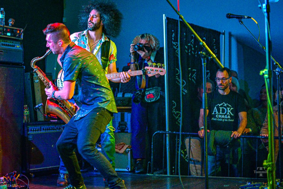 Somehow, several performers including Mateo Vosganian on drums, Mike Oehman on sax, and Rish Derbyshire on bass played with all three bands. I barely had the energy to fight the almost sold-out crowd, I can’t imagine the stamina it must take to play for several hours with only very short breaks.