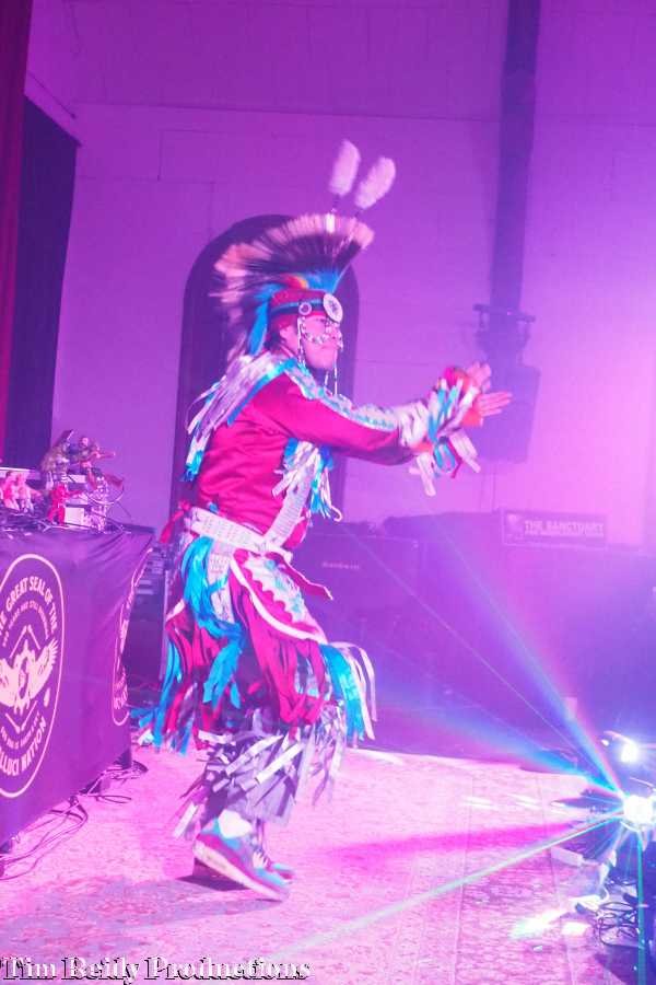 Canadian electronic indigenous musical group The Halluci Nation brought their signature sound to Troy, New York on Thursday November 2nd. The Sanctuary for Independent Media hosted this amazing event at their historic (former church) location at 3361 6th Ave. I (Rob Smittix) have driven and walked past this building many times and I always thought it was a cool site to see from the outside. Now, I’ve finally had the inside experience and best of all with one of my favorite performing acts The Halluci Nation.