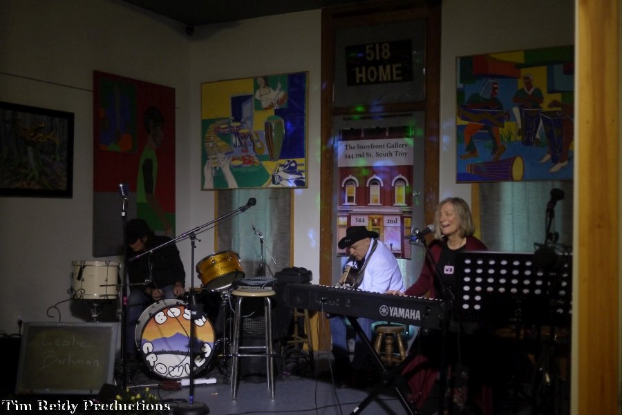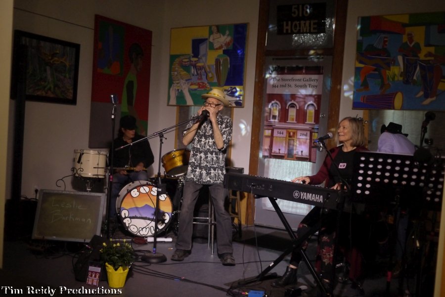 Leslie Barkman and friends performed at The Storefront Gallery on Second Street in Troy, with lots of art to boot. Photography by Timothy Reidy.