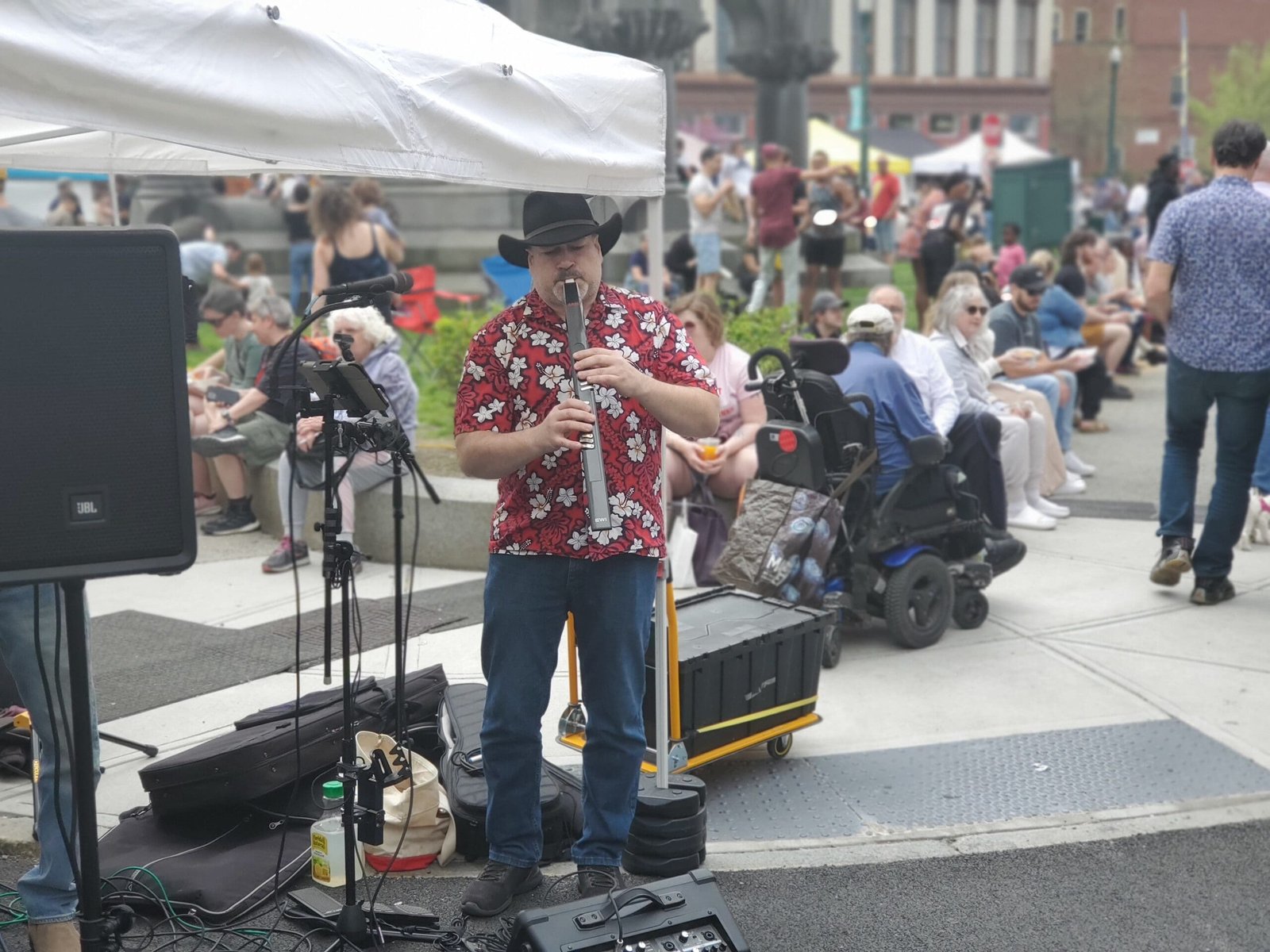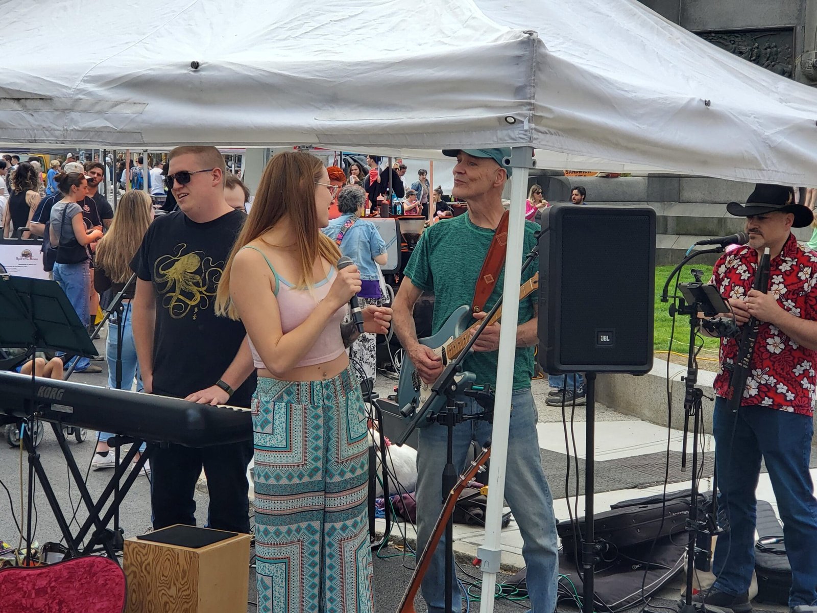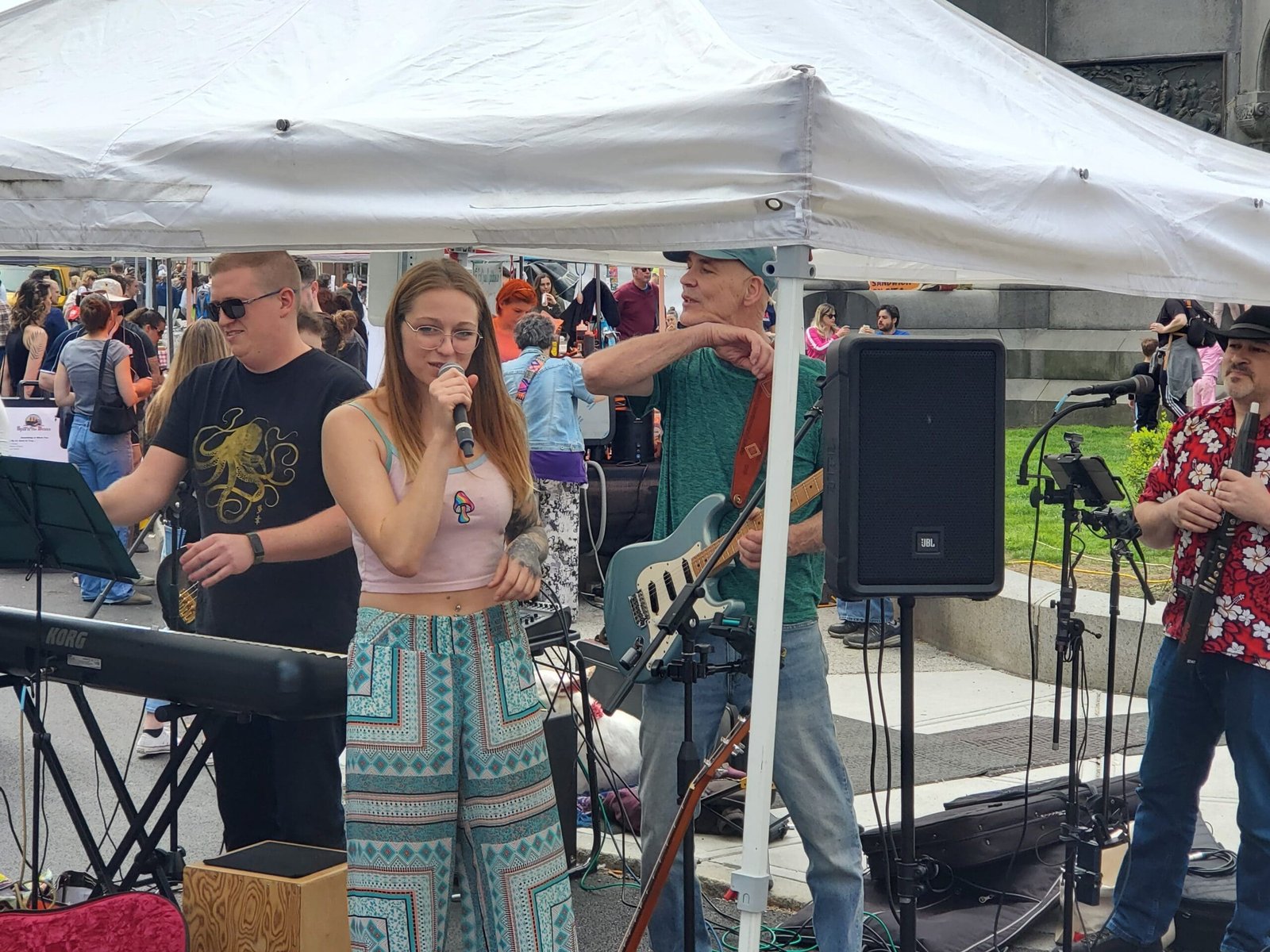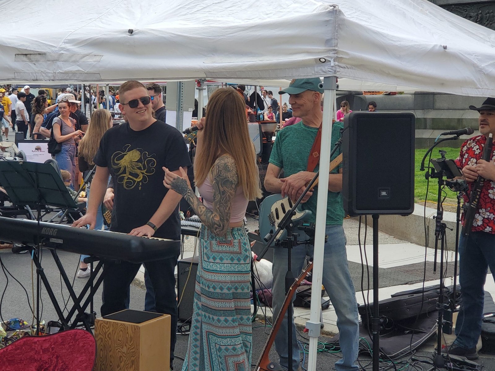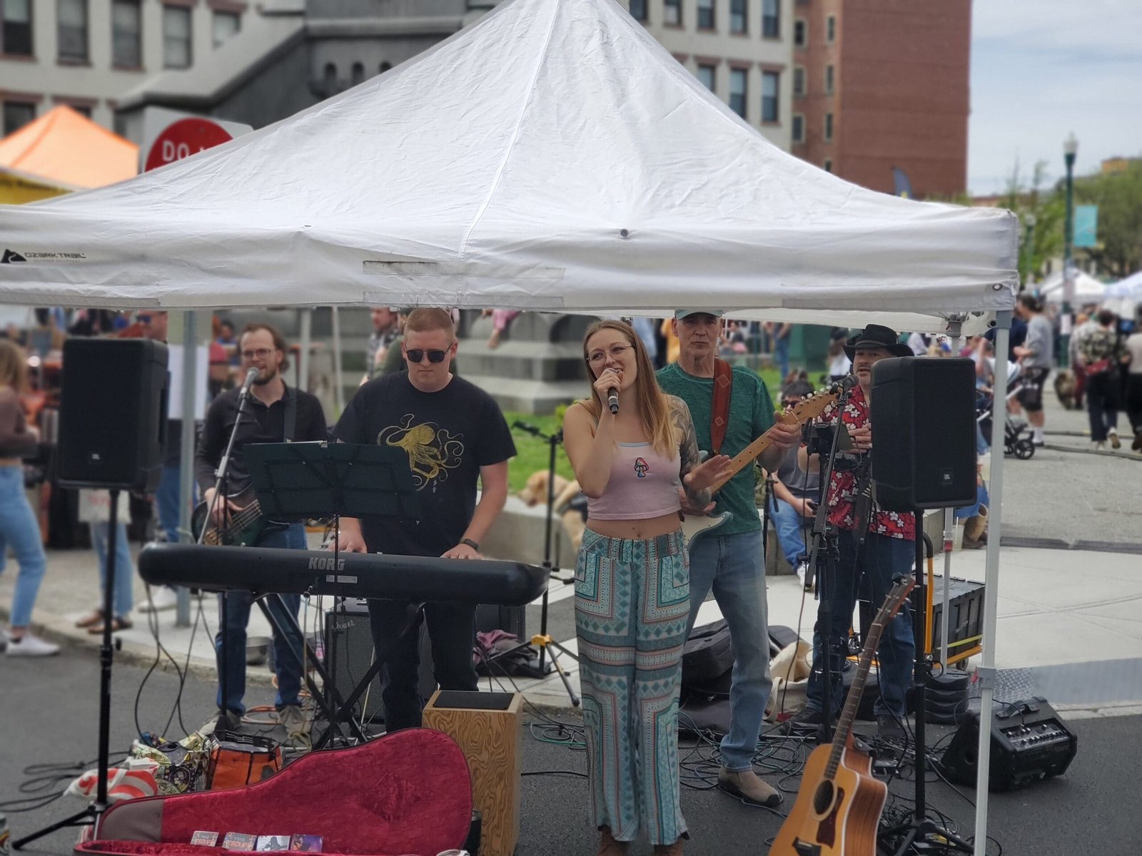 Shannon Tehya and The Troupe performed under a tent awning at the Troy Farmer’s Market in downtown Troy on Saturday, May 4th. Photography by Liam Sweeny.