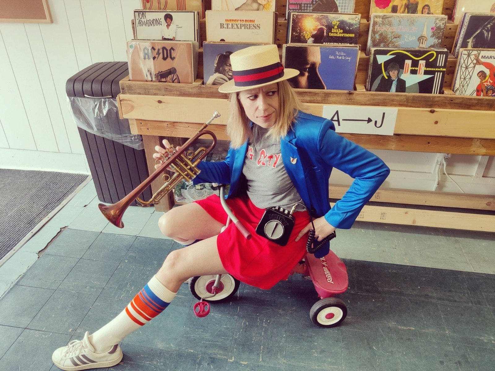 So I play trumpet. So mostly what I find; and these days I see a lot more women playing trumpet, but you usually find, especially in symphony orchestras and things like that, you find older men. And I wasn’t setting out to play trumpet, I wanted to be a drummer, but my brother already played the drums. So at age nine, when you’re forced to play something, especially in the Midwest where you do marching band and everybody is expected to play, they said ‘no, no, no… pic something else.’ So the only thing I could get a note out on is trumpet.