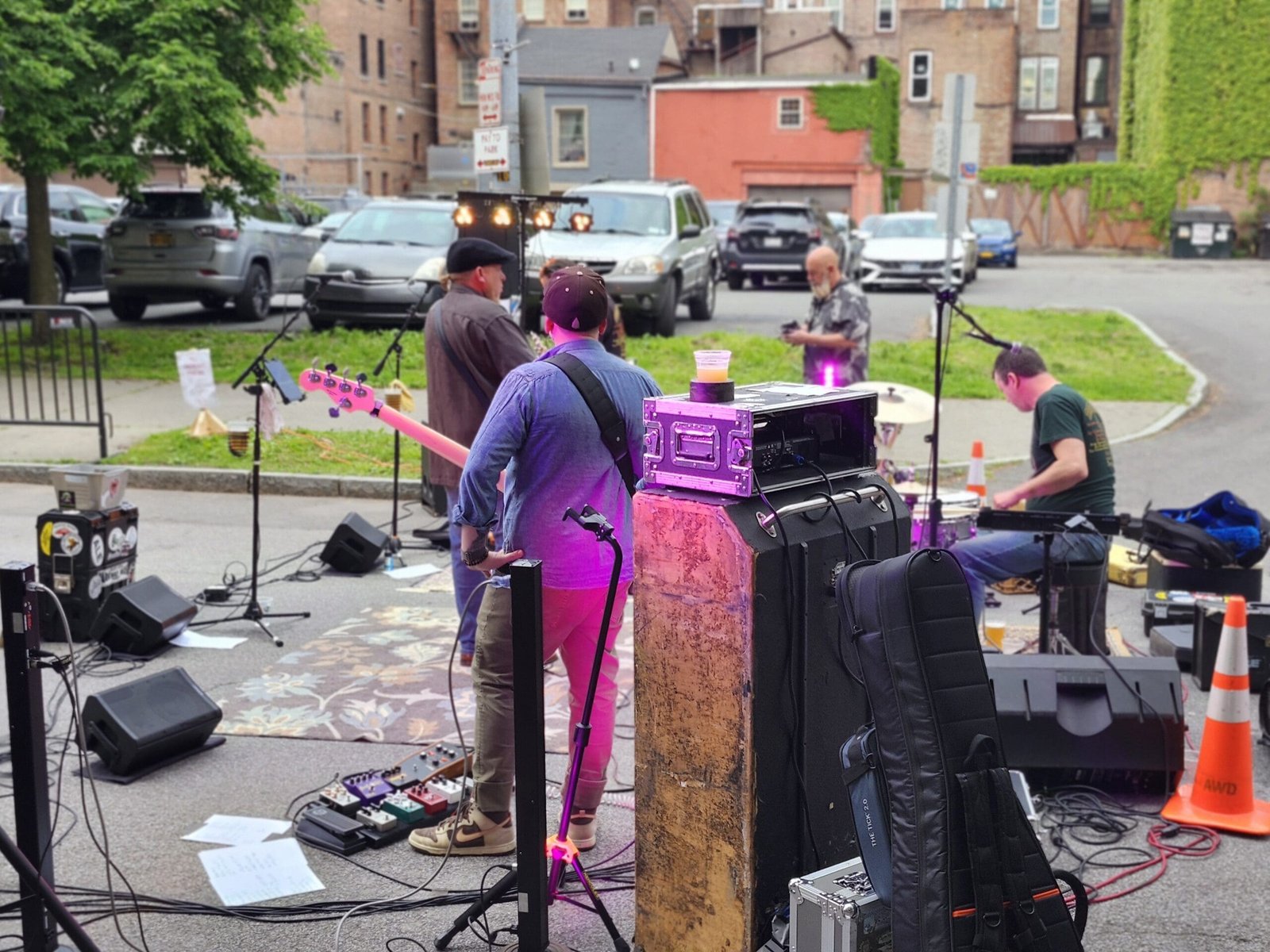 It’s a block party, and setting up when I arrived was Brian Kane. I know Brian plays around, and I mean everywhere. See, I write out the weekend show listings and I see his name so much I could make him a tour poster.