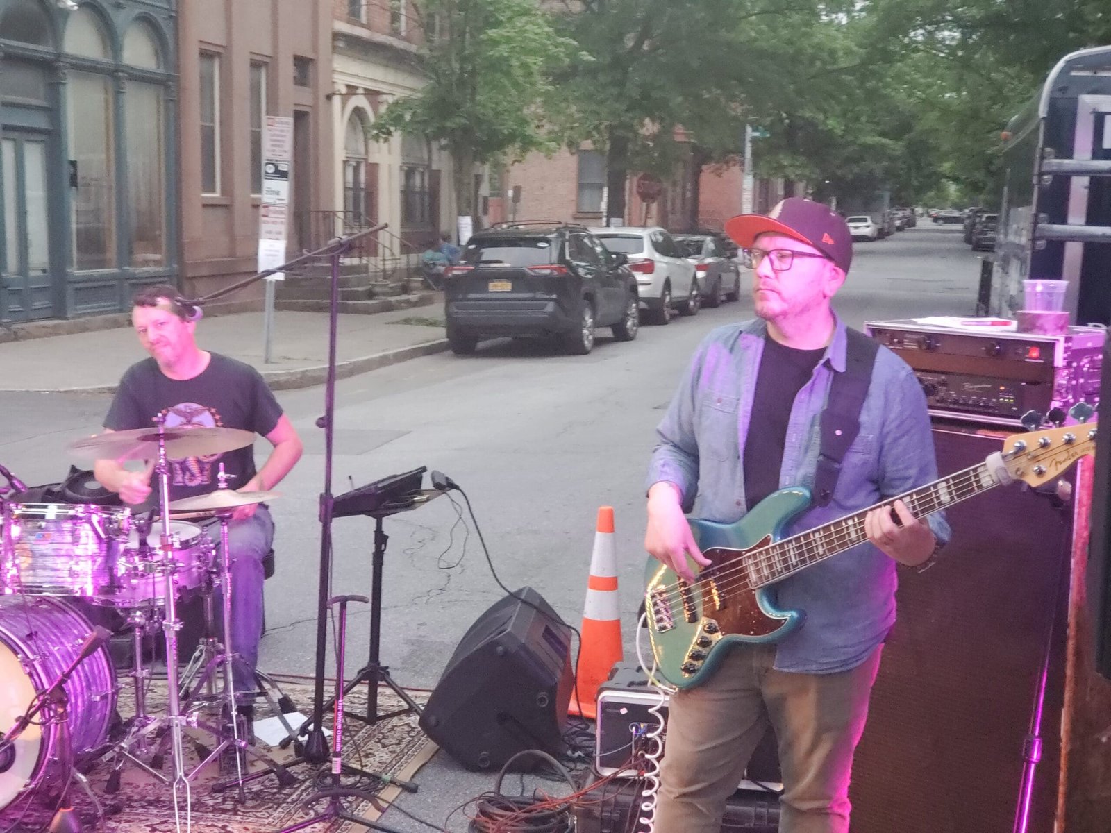 But to the focal point of the nascent eve, Brian Kane Trio. Amazing. Tight, rock like rock ought to sound live. And even though it was out in the middle of First Street, it was an environ of acoustical finesse. Maybe it was the way the buildings climbed just so high to either side, just funneling the sound to the easy hundred or more people in attendance. No clue, but reckon the best stage for a show turned out to be no stage at all.