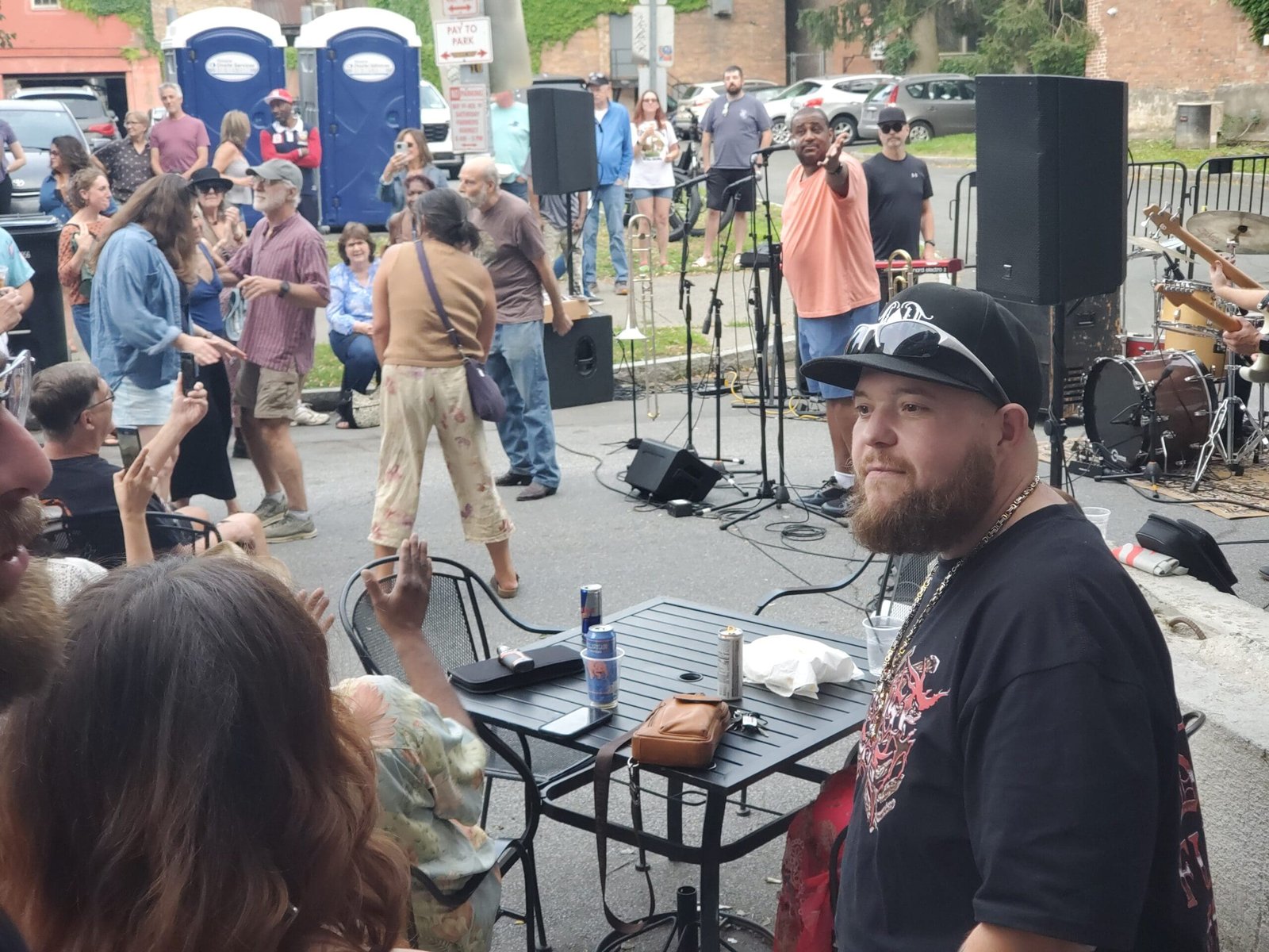 We got up there, had to park on Fourth because got’damn there was a crowd to beat the band, or a band to beat the crowd, or maybe talk of beating could just be applied to the heat of the night or maybe just what was sure as shit gonna come out of the drums all night.