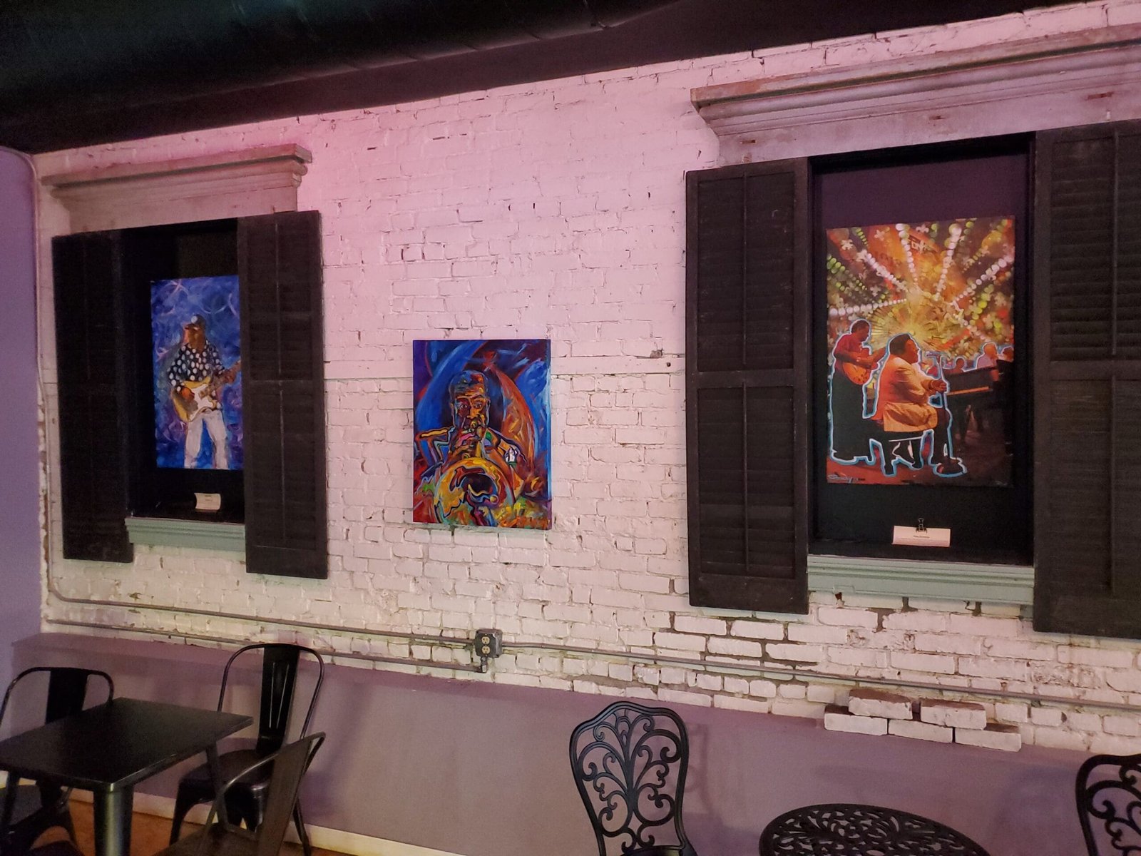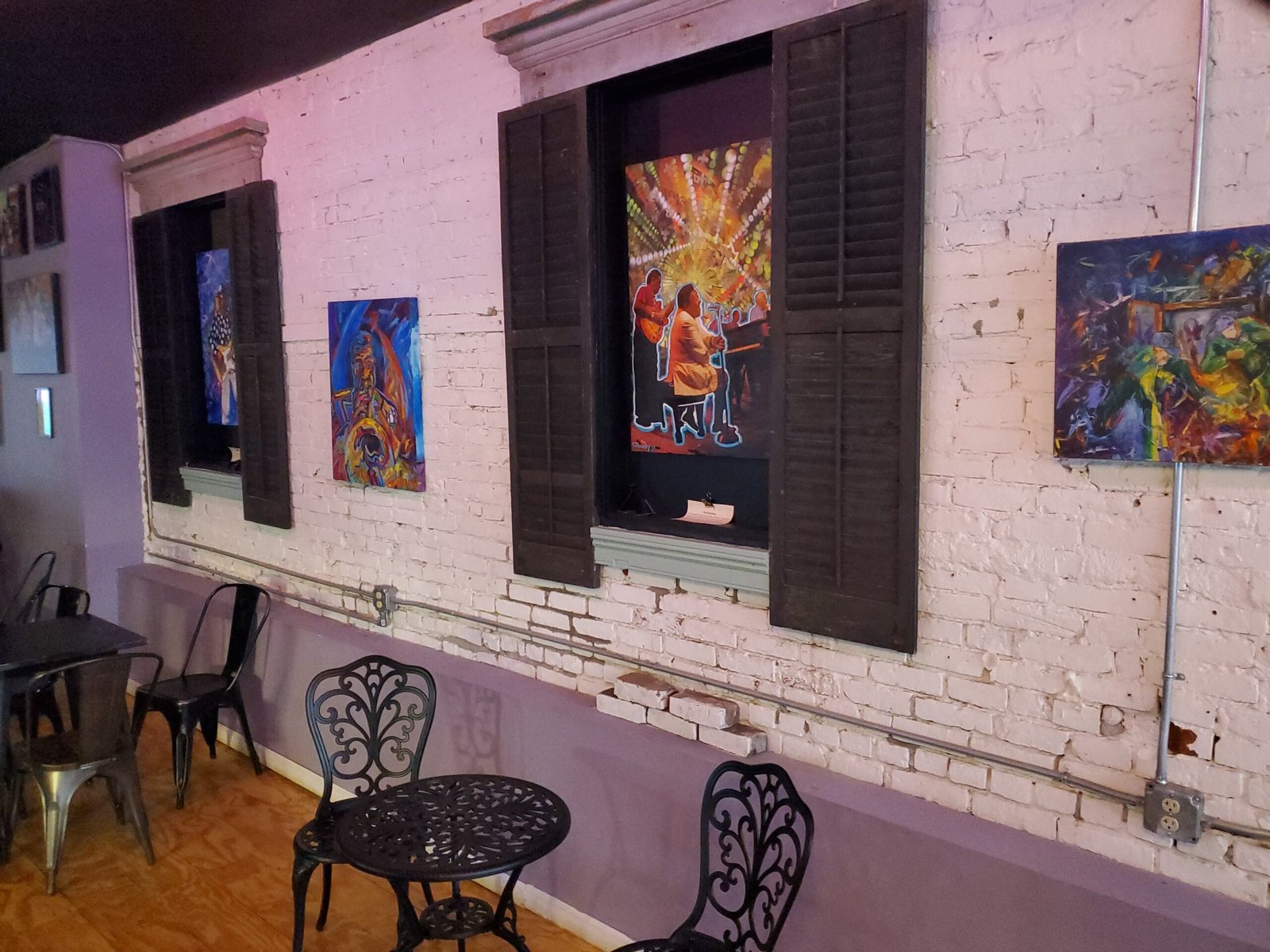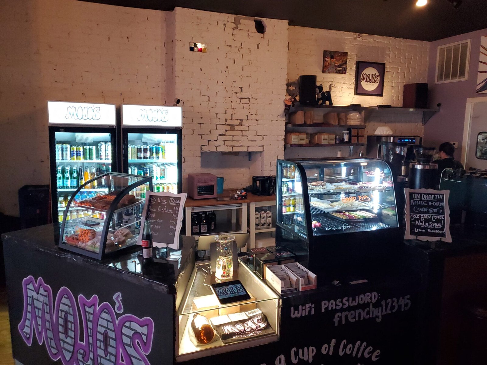 We didn’t stay, because I never do, and I heard that Mojo’s Café and Gallery had a funk band too. We got there, and the place looks pretty cool. I liked the color scheme, purples and such if my eyes weren’t drunk, and they had Mexican Coke. Yeah, you know what I’m talking about. They also had a dark roast coffee and I grabbed a pound. Jill had a Persecco. They had a patio out back, and we sat out there and I summoned my fourth wind since I’d been up since one a.m. But I didn’t have mandrake or methamphetamines, and maybe either one would’ve worked because they both come with demons.