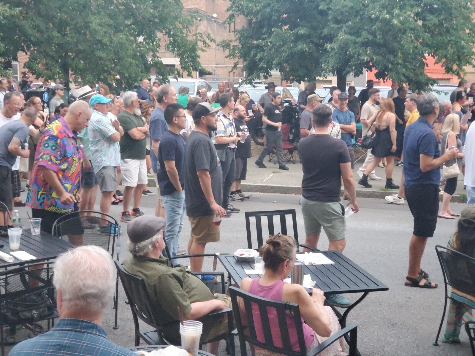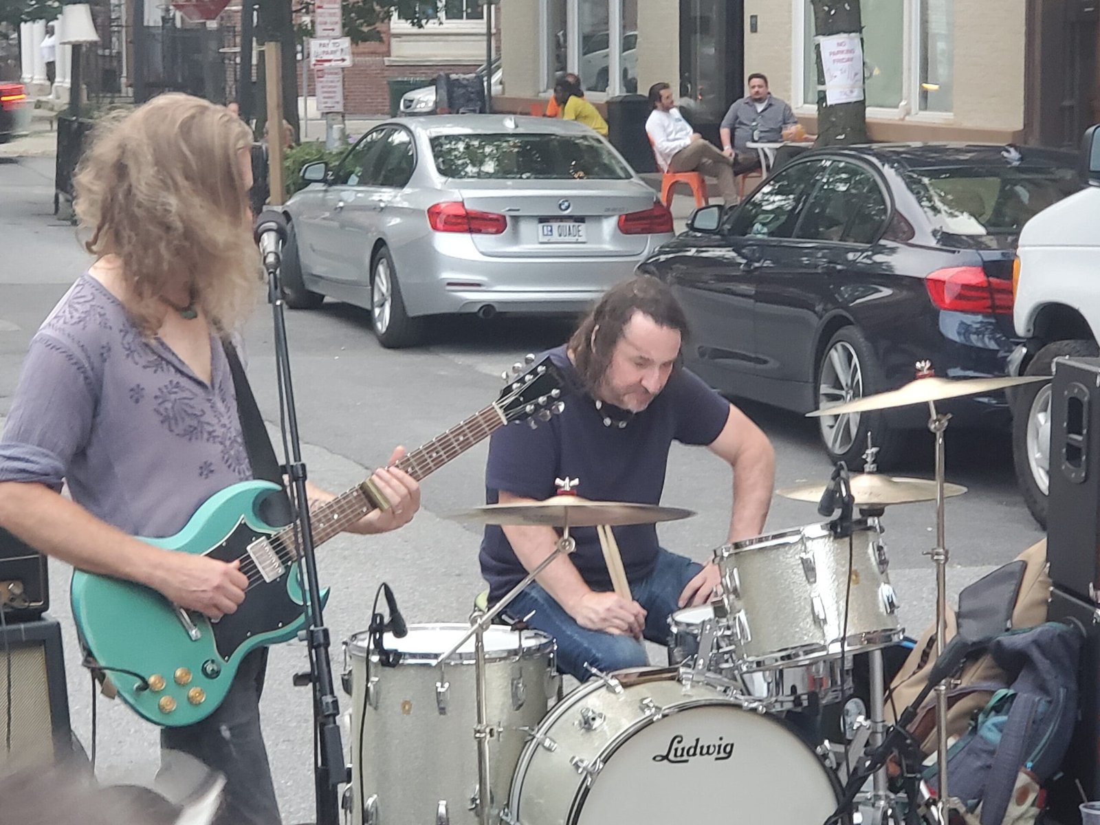 Saw a couple of people. Saw my buddy Keith Twomey, who was making it happen in the crowd, a role that is underappreciated in reviews; well, no more. I did see drummer extraordinaire Joe Barna, who told me he was playing in the after-party inside Twisted Fiddler. I did stay for that, and saw Joe, Rich Ertelt on guitar and Chef Dave on harp. I didn’t know the bass player. I’ve covered Joe, Rich, and Dave before separately, so I’ll just say everything you expect of these quality cats was in their cup, and it runneth over.