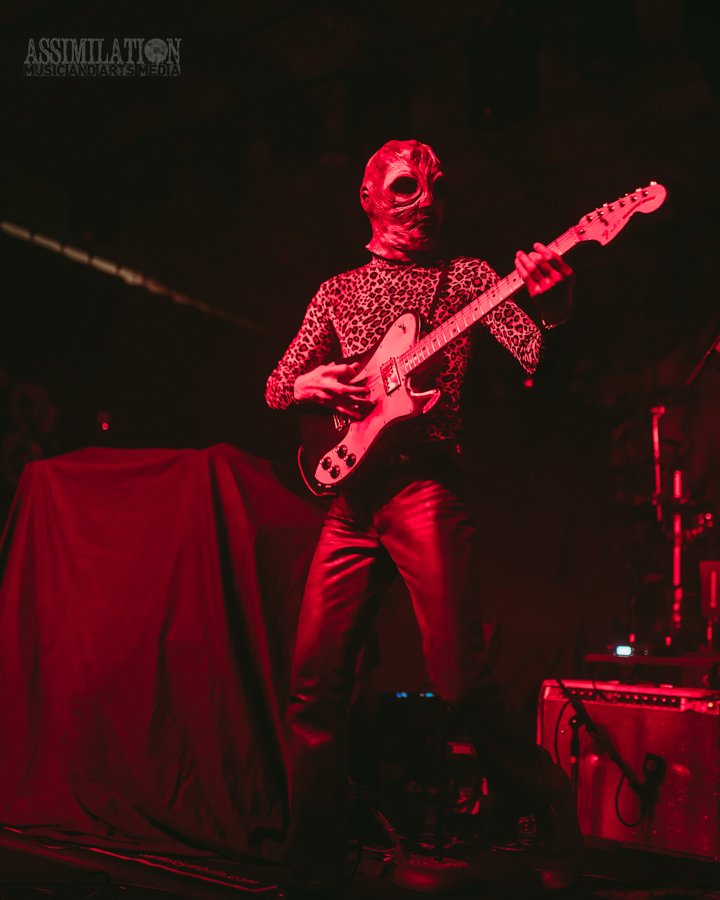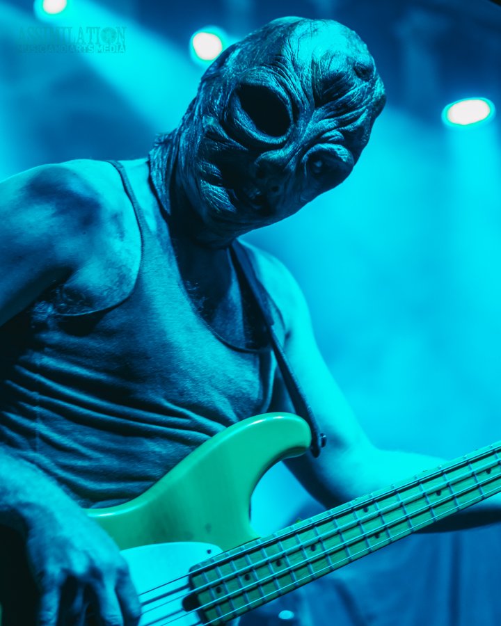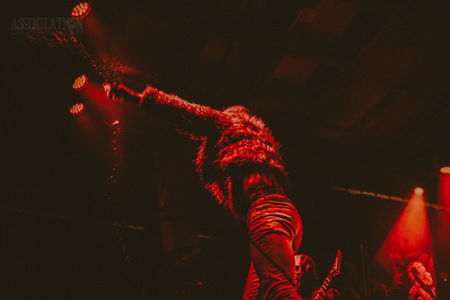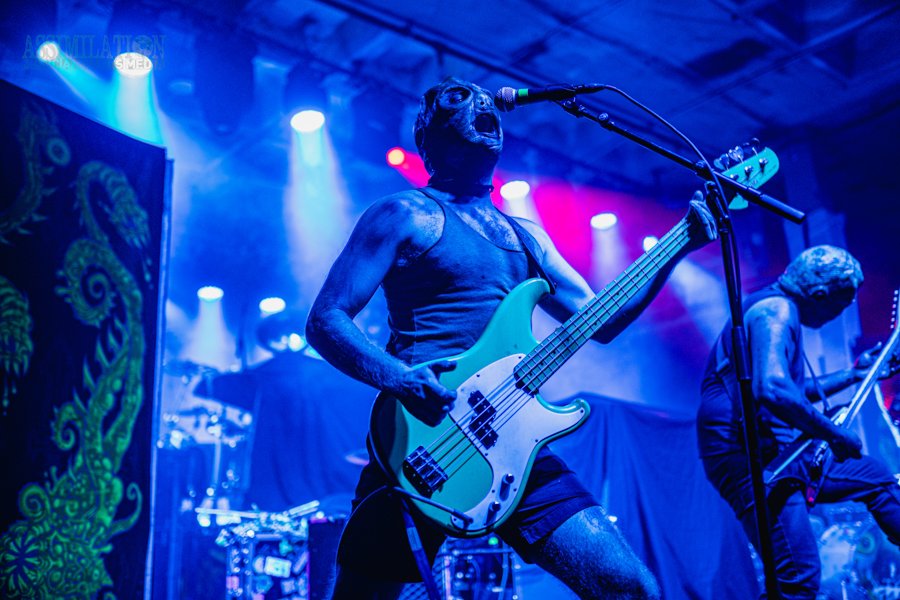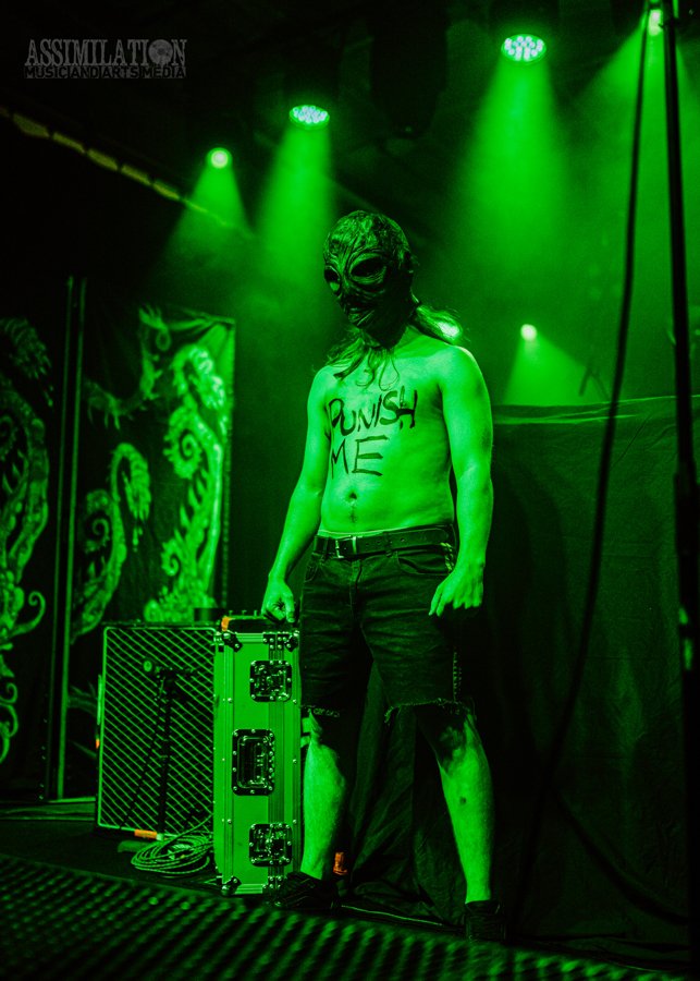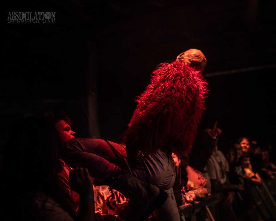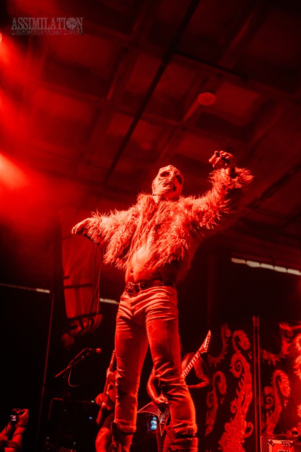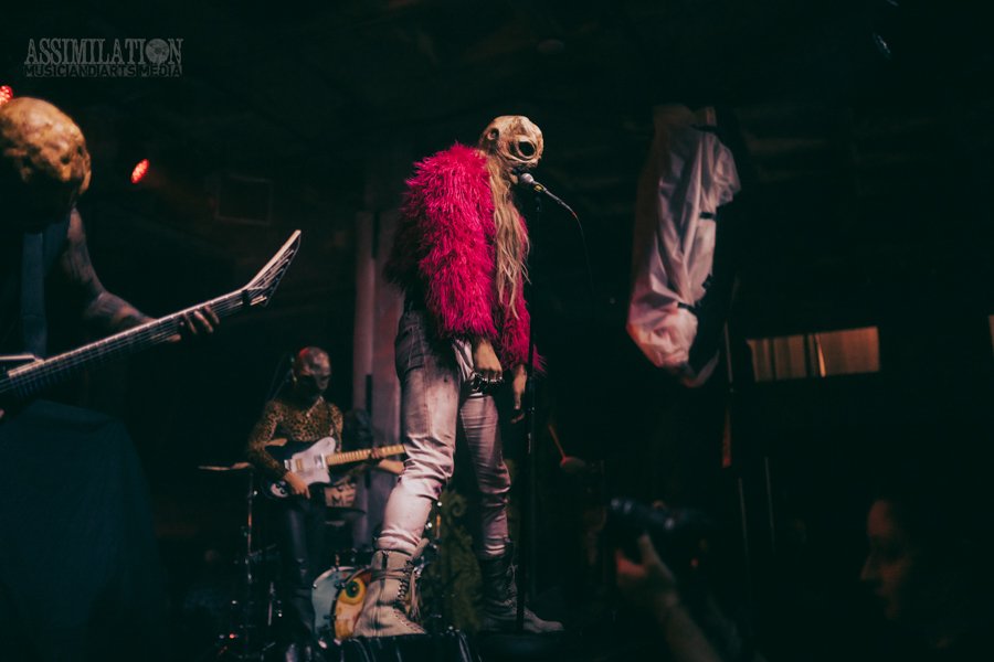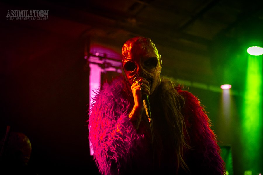 Emerging onto the stage looking like a decaying mob of squids, stage lights flickering as if a looming doom is about ready to take shape. To subtly add to the horror, the vocalist was wearing a fluffy, pink fur coat… All while everyone was wondering, how in the hell did these squids get on stage?