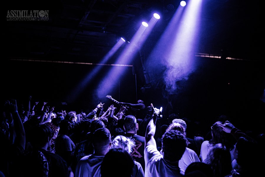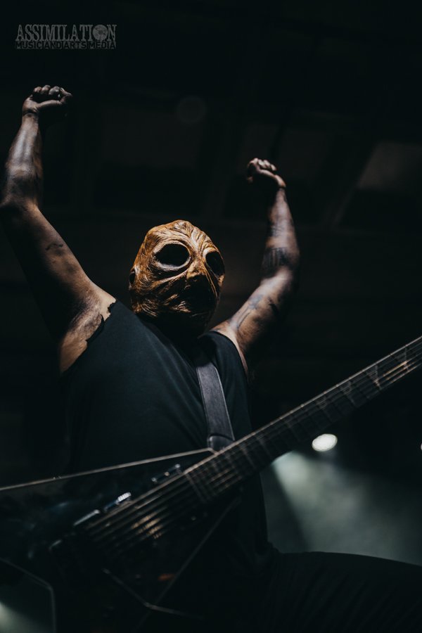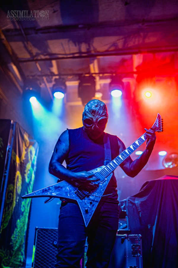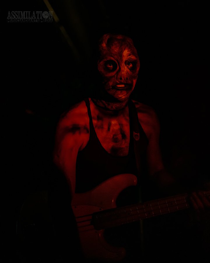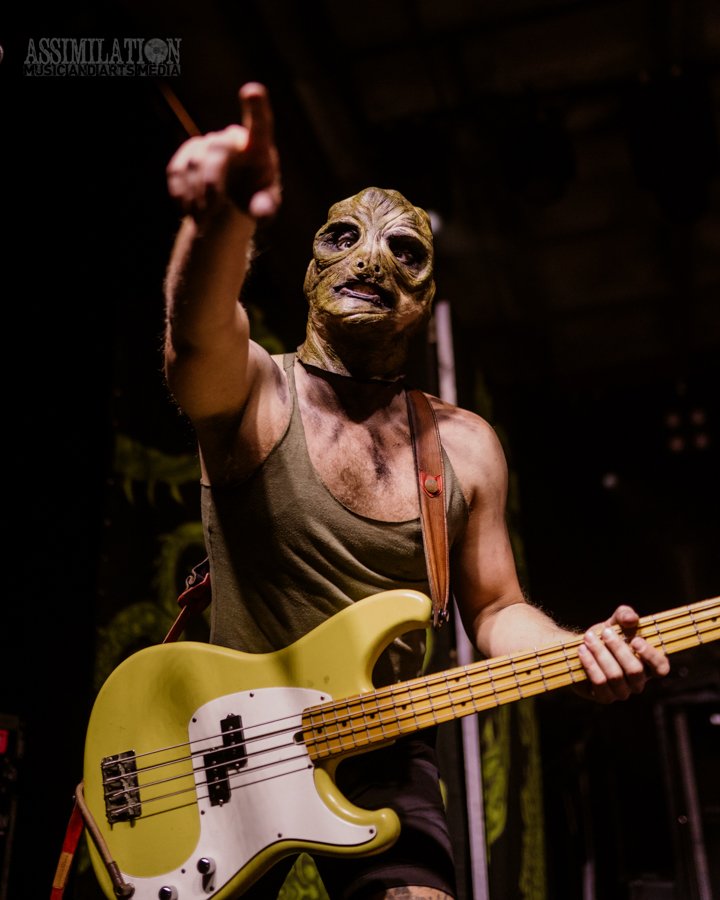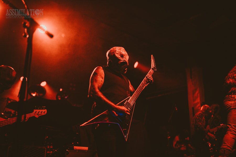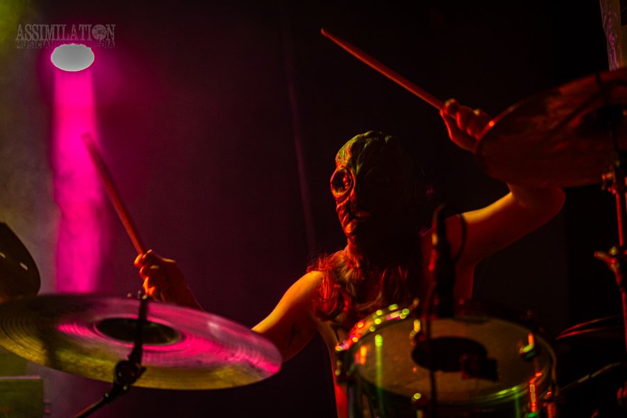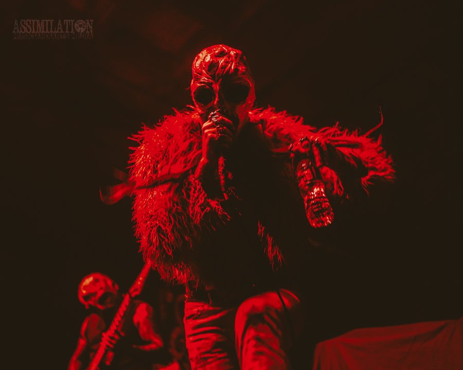 Emerging onto the stage looking like a decaying mob of squids, stage lights flickering as if a looming doom is about ready to take shape. To subtly add to the horror, the vocalist was wearing a fluffy, pink fur coat… All while everyone was wondering, how in the hell did these squids get on stage?