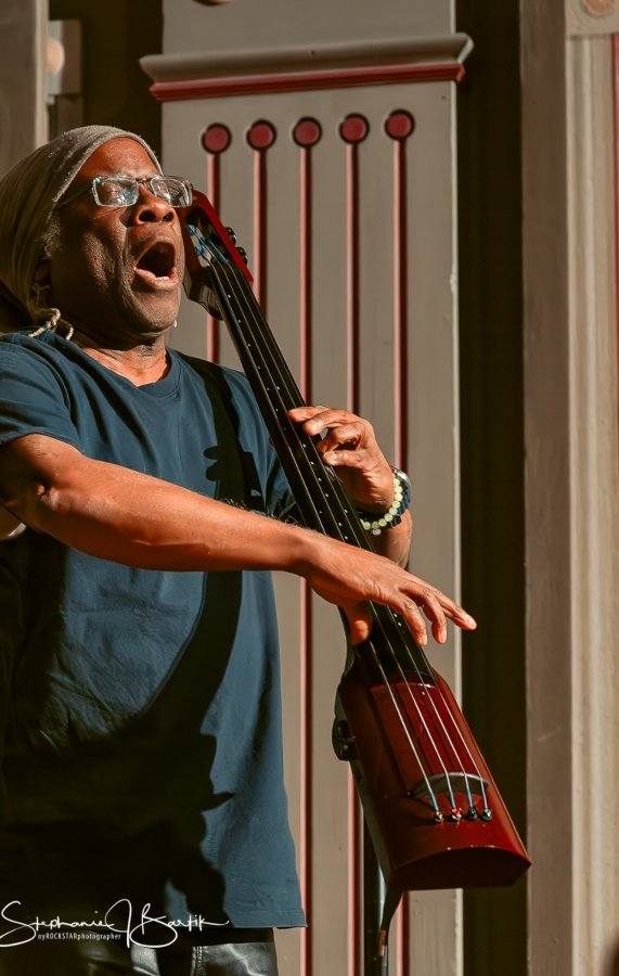 Let me remind you that no two Doom Dogs shows are exactly the same as the band improvises their entire set. Our photographer Stephanie J. Bartik was given the standard photo instructions for a concert, no flash and she was allowed to shoot the first three songs. Well, I had to laugh because after they played for 20 mins it became apparent that they were just jamming and there was no way to tell when a song has ended or started. I whispered to Reeve’s wife Susan that it was funny that we had the 3 song rule and she responded “Yeah, it’s all one really long song.”