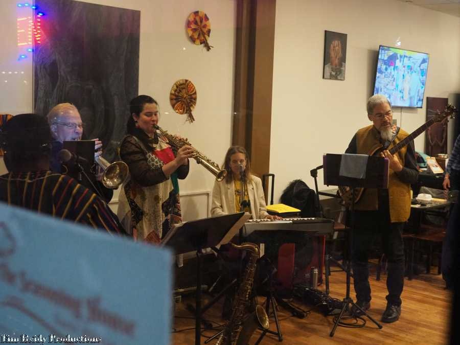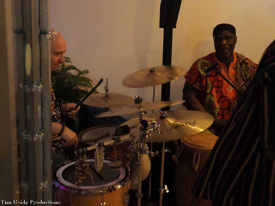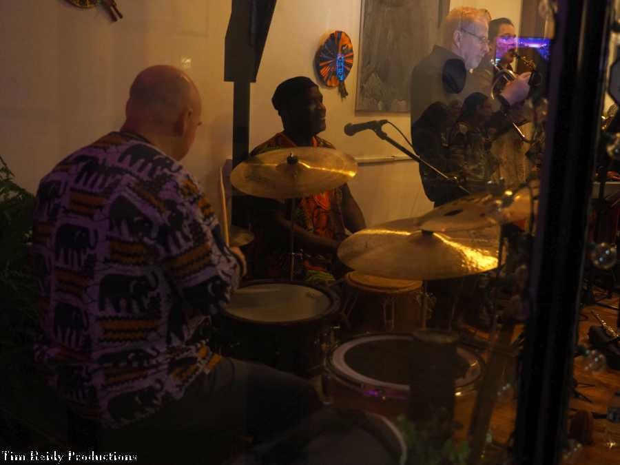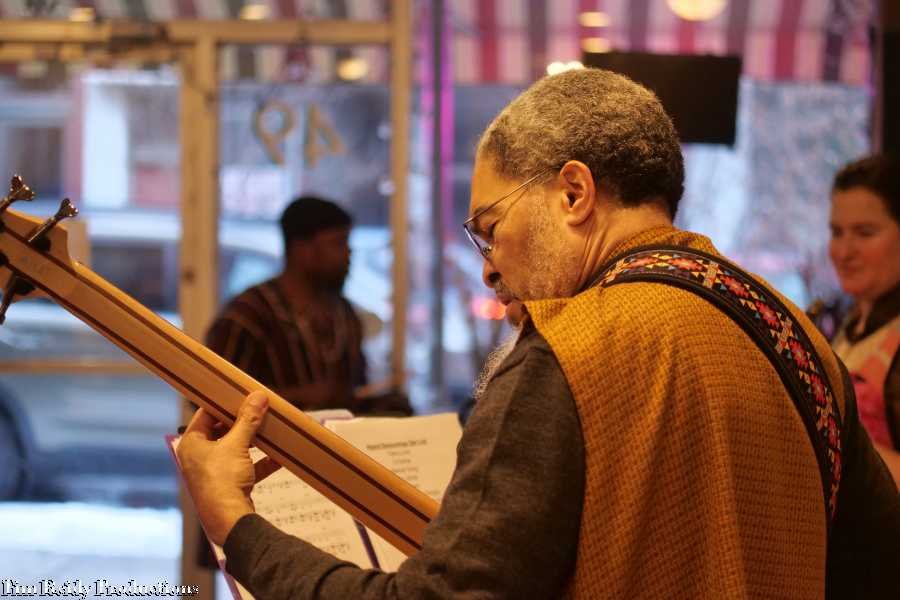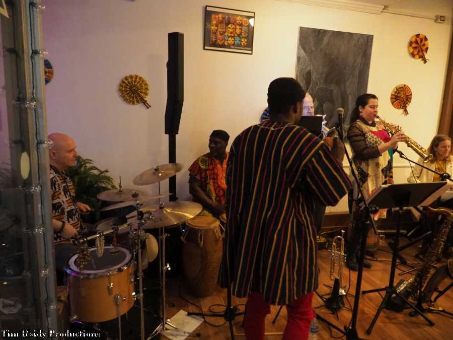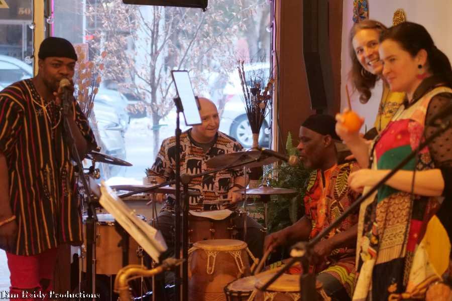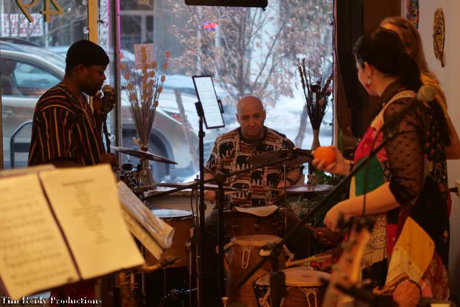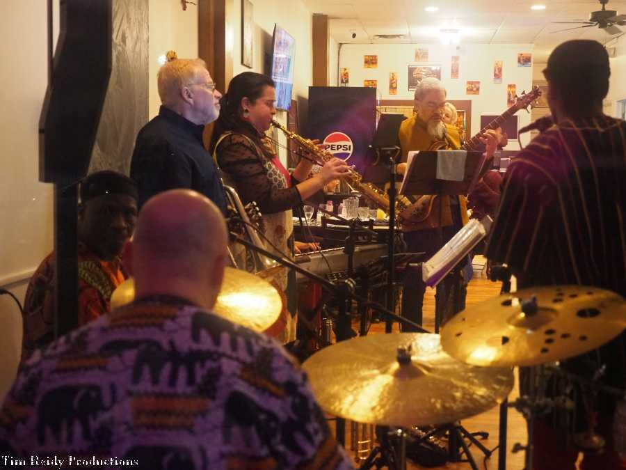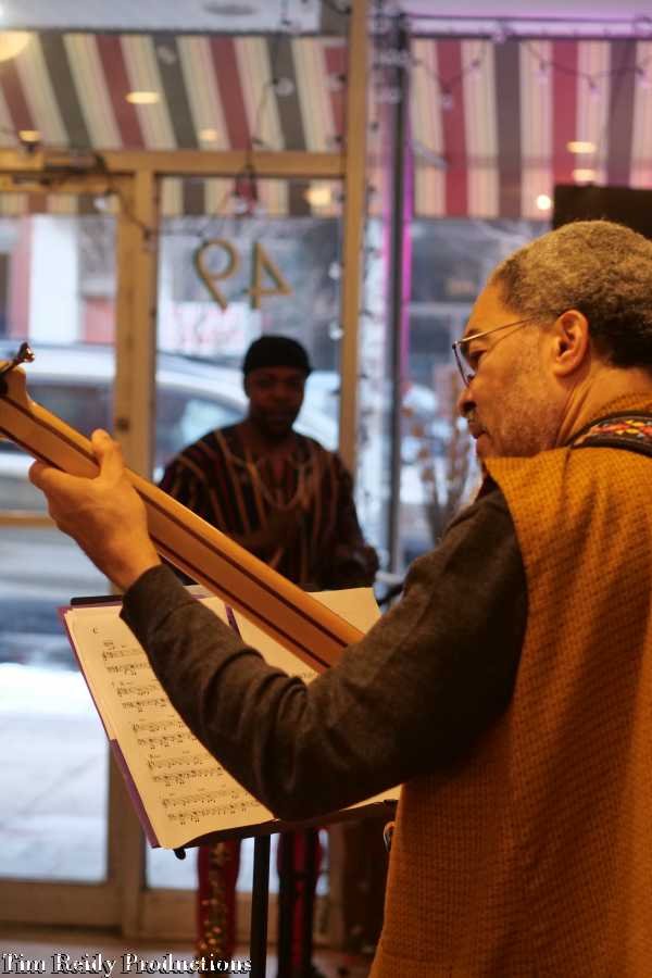 On a Sunday afternoon, Heard played some African-style music to accompany the African cuisine at (a packed) The Seasoning House.
