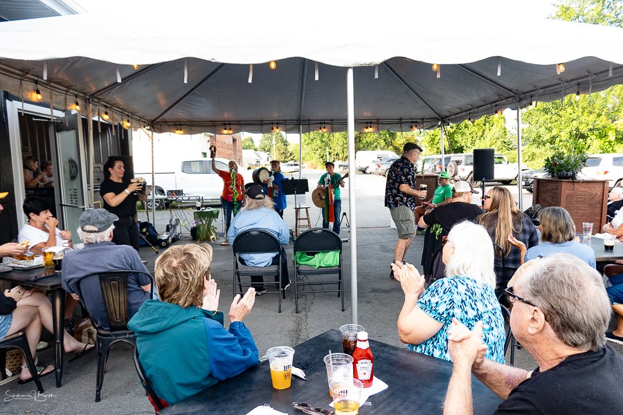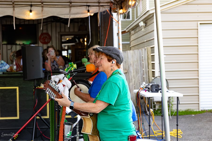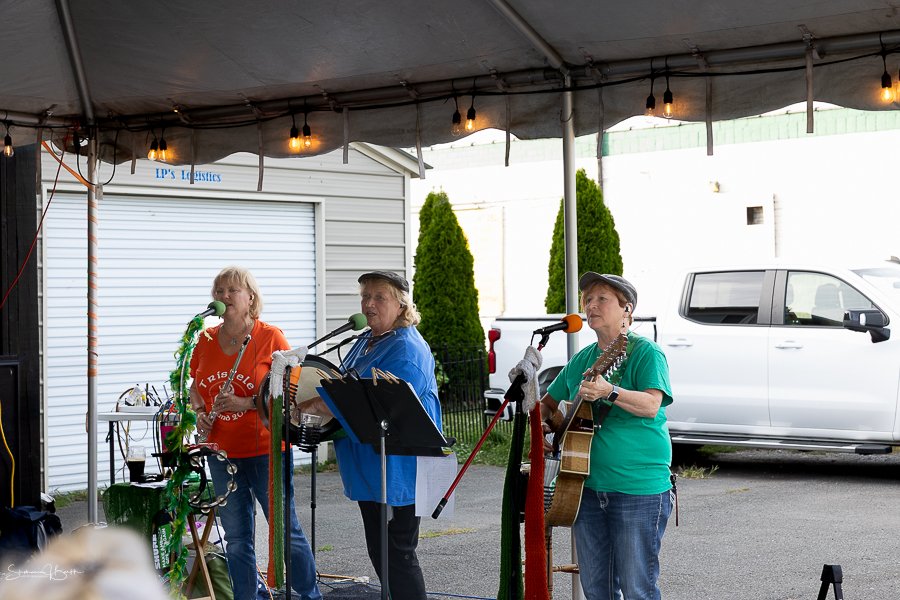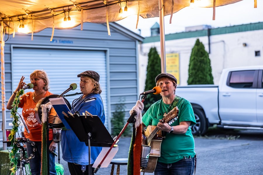 Monday evening on the deck at Patrick’s Pub in Watervliet featured cold pints, great food, and terrific Irish music with Triskele.