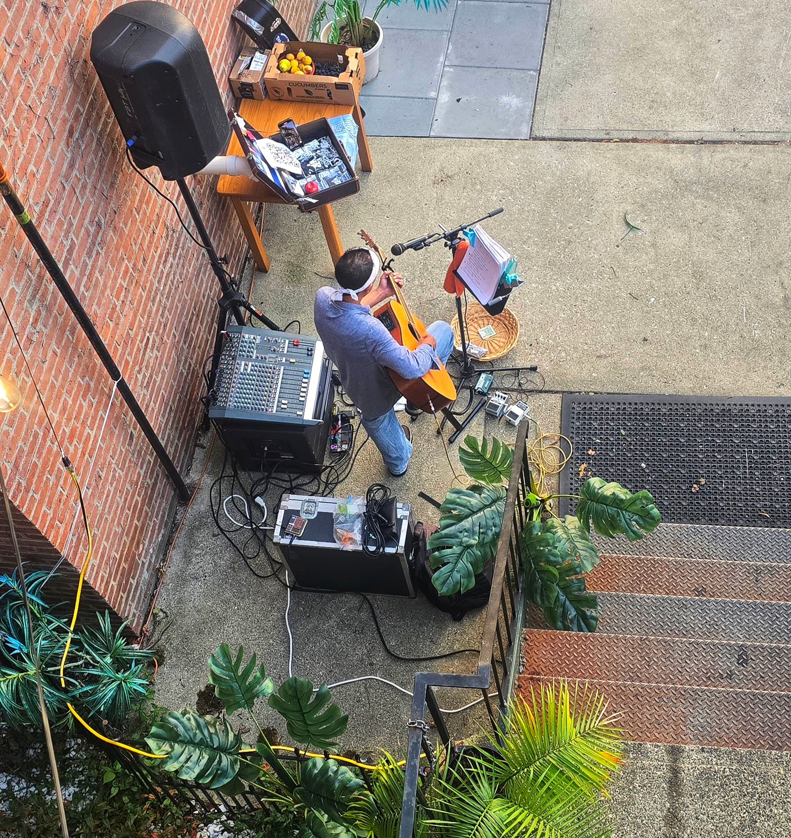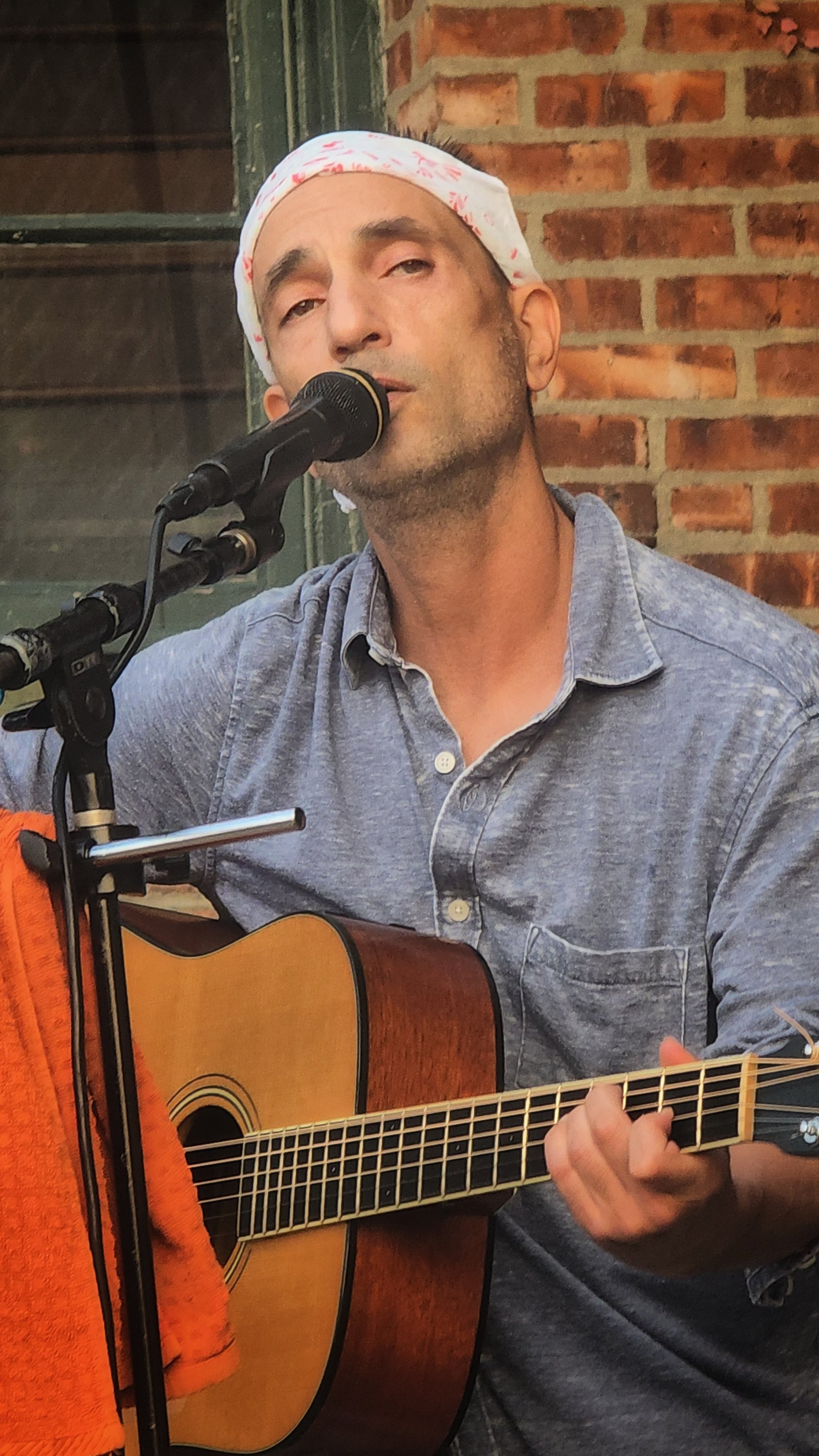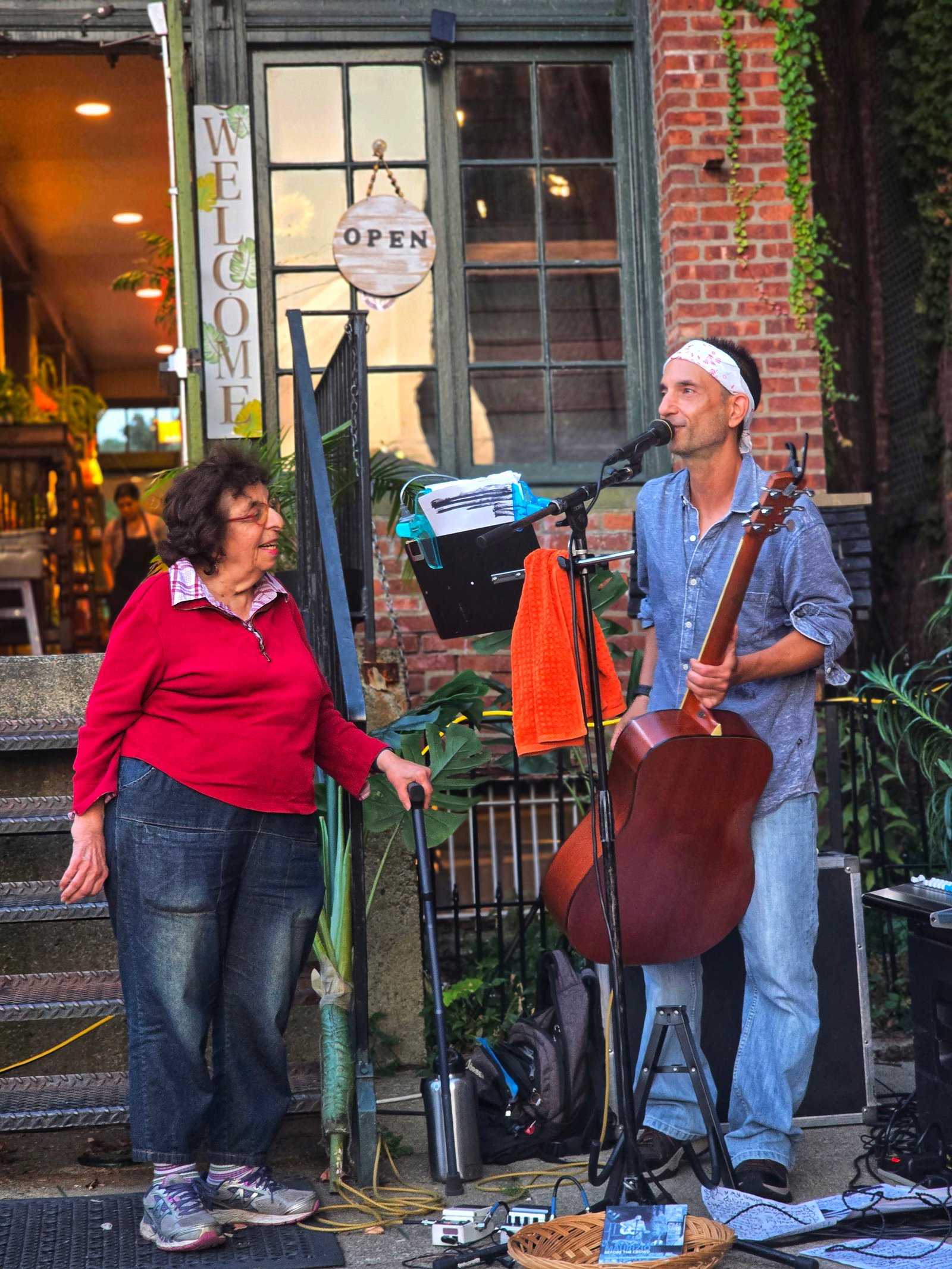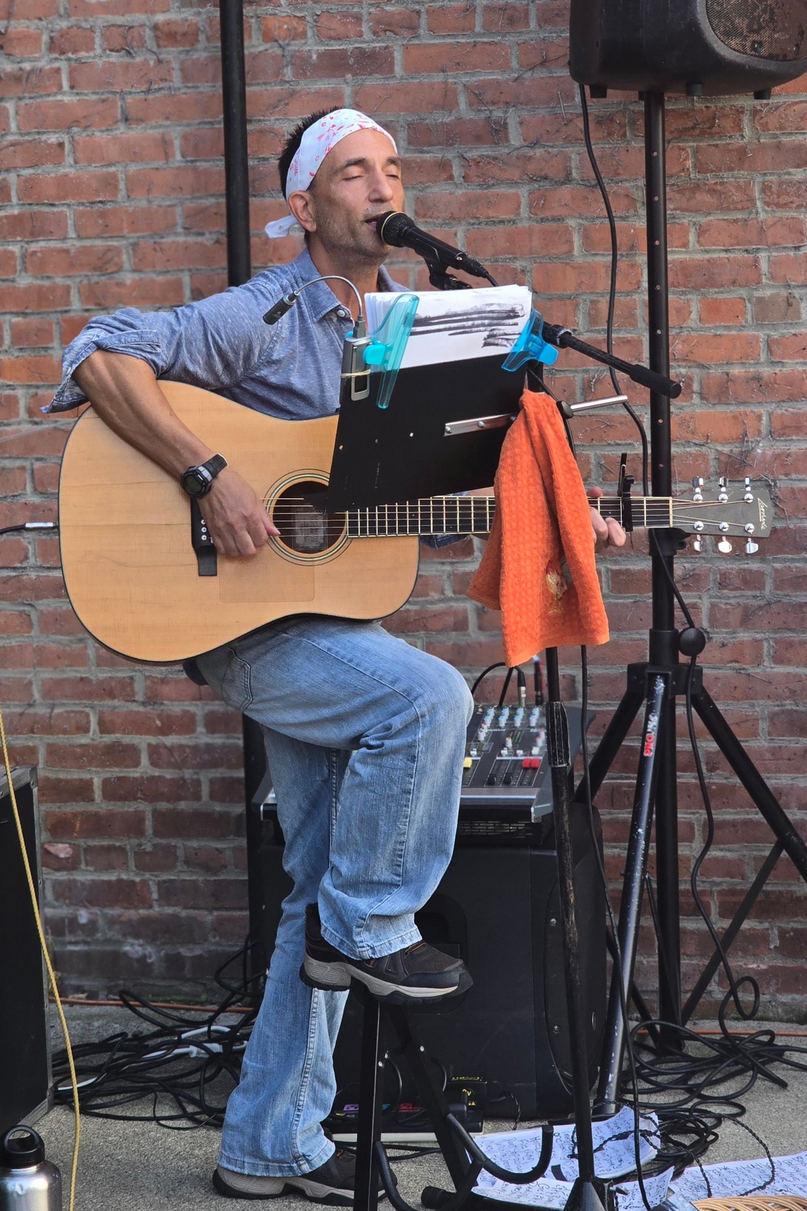 Last night was another great Friday Night Notes concert series at Oh Corn! Arepas. Maurizio Russomanno played a great set, full of storytelling, crowd-pleasing covers, and some well-chosen original songs, including “Simple Things” and “Breathe.” He had a friend and collaborator, Geri, come up and sing a song she wrote for her granddaughter, called “Hang On, Baby“, and took a few requests from the crowd. The weather was cooperative, and Jose and Belkis were fantastic hosts as always … welcoming and supportive of local music and community. Delicious food, fabulous hosts, and a great concert in a hidden oasis on the Hudson made for a fantastic early fall evening in Troy!