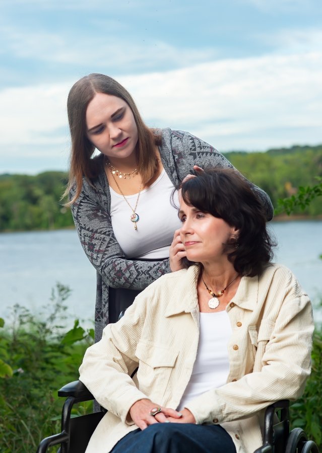 The ensemble cast of Deep Blue Sound is sensational!  Much of the cast plays multiple characters – with the main characters described here in the review.  You’ll have to see the play to catch a glimpse of all of the townspeople. Kathleen Carey (Mayor Annie) is hilarious playing a symbolic Mayor with no power.  Carey showcases the Mayor’s worst flaws with adept comic delivery, and peels away the comedic layers perfectly to see true vulnerability and humanity.   Carol Charniga (Joy Mead) plays the local town newspaper reporter with the experience of being in a cult, with humor, sparkle, and compassion.  Jessica Córdova (Mary) is so realistic in her portrayal as a woman in the midst of a divorce – showcasing strength, determination, uncertainty, anger, and empathy. Christine Kenefick (Ella) is a revelation! Kenefick plays one of the central characters that is struggling with her mortality and diagnosis with cancer.  You are pulled into her orbit from the very beginning of the play with her grounded-ness and approachability.  Quinn Solace (Ali and pharmacist) plays Ella’s daughter who has returned from NYC to care for her mother.  Solace’s Ali is strong and fierce and yet helpless and floundering. Solace brings depth and realness to her Ali and her scenes with Ella are enchanting. Tony Pallone (Chris, Alexander, Oceanographer) plays three main characters during the play – Chris, Mary’s estranged husband, Alexander a young boy determined to be a great dancer, and a German Oceanographer.  Pallone plays each character definitively – each with their own humanity and each with sincerity.  He is funny, visceral, and his scenes with Mary are submerged with honest realness. Joyce Reynolds (Leslie) is adorable as a local horse groomer and prolific pen pal. Reynolds was such a pleasure to watch on stage and she delivers Leslie’s fantasy of visiting Spain with such genuineness – you want Abe Koogler to write a sequel to the play to see if Leslie makes it to Spain and to see what she does when she gets there.  J. Scala (Homeless Gary and Whale) is a chainsaw wielding mystery not only to the audience but to the townspeople themselves.  Scala delivers his Gary with opacity and mysticism.  He is other worldly – yet grounded.  Scala is enchanting as the whale and you can’t help but to be transfixed on him as he delivers his lines.  Dennis Skiba (John) is simply wonderful as John, Ella’s good friend.  He embodies the best qualities of all of us and his scenes with Homeless Gary deliver a reprimand to each of us cloaked by his own blunders.