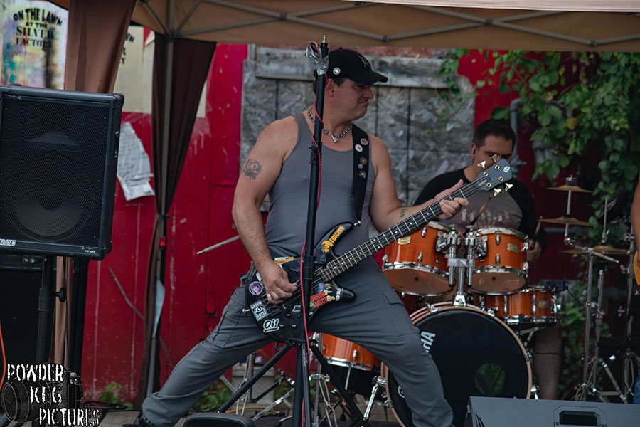 VB: So we met Chris Ebbs at the Hangar in December of 2024. We were opening up for Franche Coma’s band, FC Inc. That was a big deal for us because he was the original guitarist of the Misfits. Chris was there taking pictures of the event for RadioradioX. I guess Chris really liked our music, and we clicked with him as a person because he’s an awesome guy. He takes amazing photographs. Yeah, so we clicked with Chris. He has a vision of getting together a venue on the lawn here at Silver Factory. He asked us to come up here over the summer, and we played the show, and that’s when it started to rain.