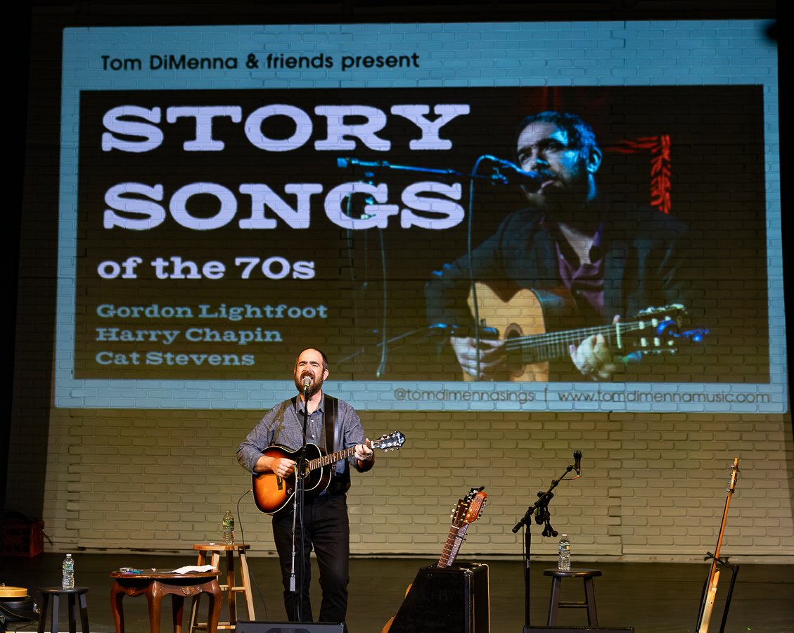 Story Songs of the 70s is a Maine-based seasonal concert series of three timeless singer/songwriters: Gordon Lightfoot, Harry Chapin, and Cat Stevens, put on by Tom DiMenna and friends. With lush guitar playing, humorous banter, a coastal folk feel, and a balanced setlist to suit the season, Tom and the band really bring these songs to life. His voice is perfect for replicating the deep, full sound of the original artists.