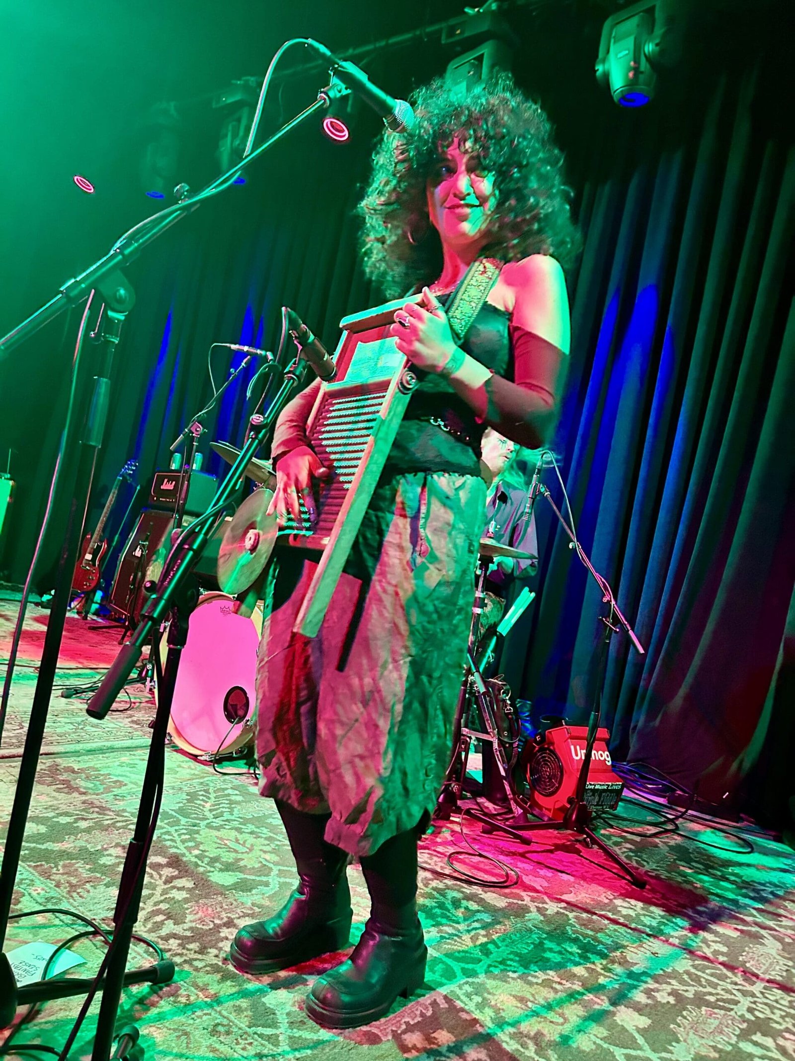 I ran into Dust Bowl Faeries’ lead singer Ryder Cooley outside the venue and said hello. She related she was having parking issues and I thought, “how could such an ethereal creature ever have to deal with parking a car?” Even on the street out in front of Lark Hall, she stood out as a Victorian folly, a dark iron statue covered in filigree. A magical creature not of this world.