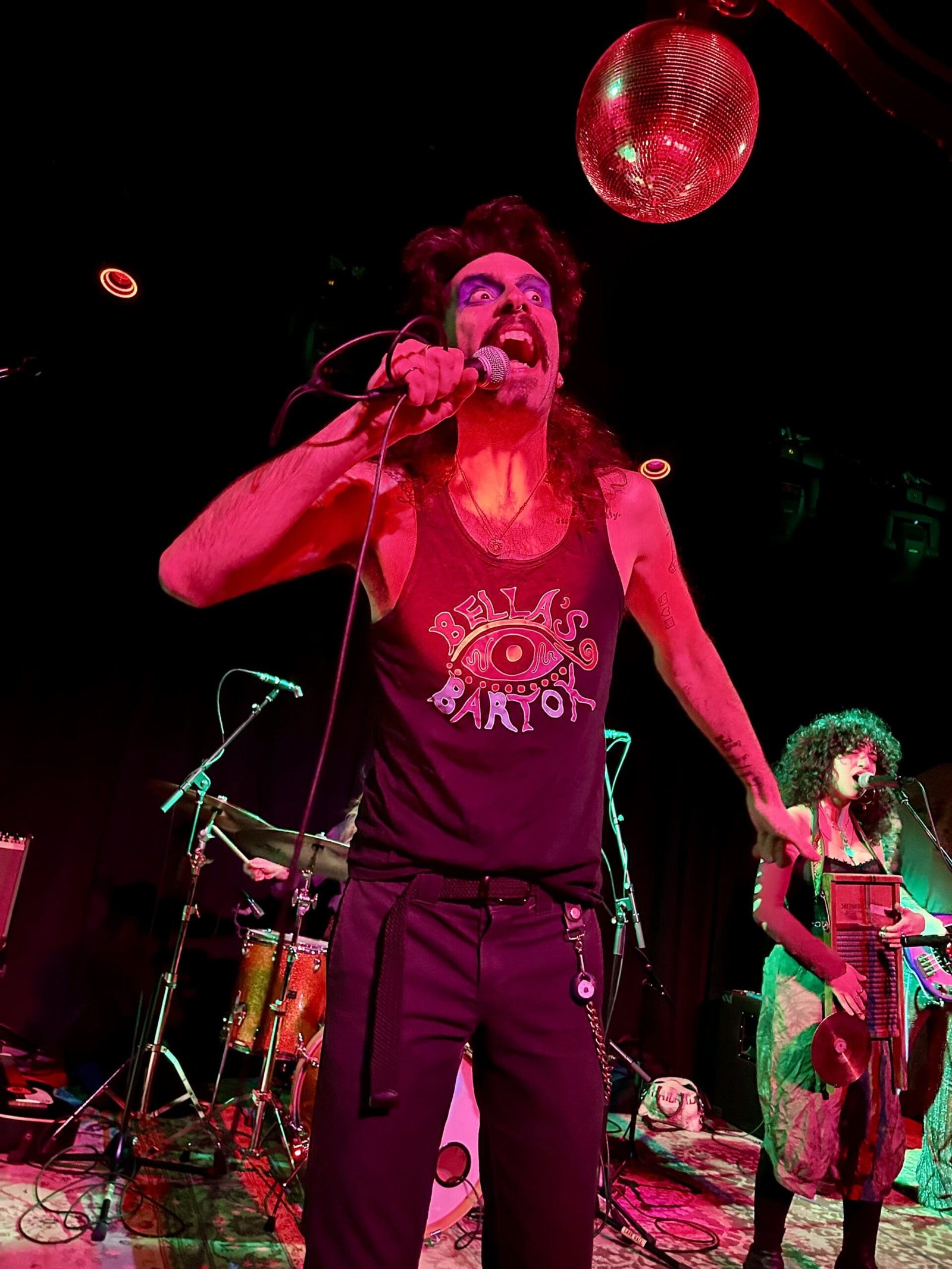 When you search Bella’s Bartok online, the keyword that comes up over and over again is “folk” but when you visit their Facebook it emphatically states “not a folk band”. I definitely heard a little bit of folk last night, but what I didn’t expect to hear was so much metal. Fronted by homunculus made of equal parts Frank Zappa, Alice Cooper with a dash of Mick Jagger thrown in and a washboard strumming pixie hippie channeling Karla DeVito, Bella’s Bartok at its core has an amazing hard rock power trio supporting all of the bizarre antics and musical choices.