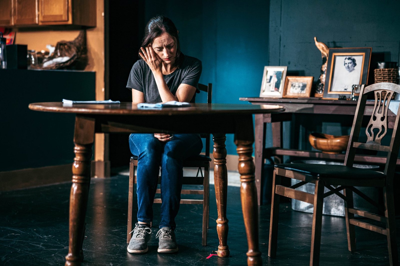 Stage Manager Linda Thorburn ensures crisp pacing and seamless transitions, maintaining the show’s rhythm and cohesion. The set was transformative (you felt like you were in a house where someone has lived for twenty years) and the entire set construction and dressing team should be mentioned: Adam Coons, Lisa Bryk, John Myers, Joel and Susan Katz, Robin Leary, Michael McDermott, Chris Foster, and Patrick White. The set creates a space that feels lived-in, rural, and quietly symbolic. It’s a thoughtful environment that supports the play’s emotional landscape. The lighting design by Laura Darling was gentle but allowed for pointed shifts to underline mood and emotional turns without drawing attention to the mechanics of the design. The costume design by Rachel Stewart made story-driven choices that added depth to the characters — most notably the realistic sweat on Peg’s shirts after returning from the work on the prairie and Ryan’s orange shirt, a subtle but unmistakable nod to his justice-involved past. The detail is smart, understated, and meaningful.